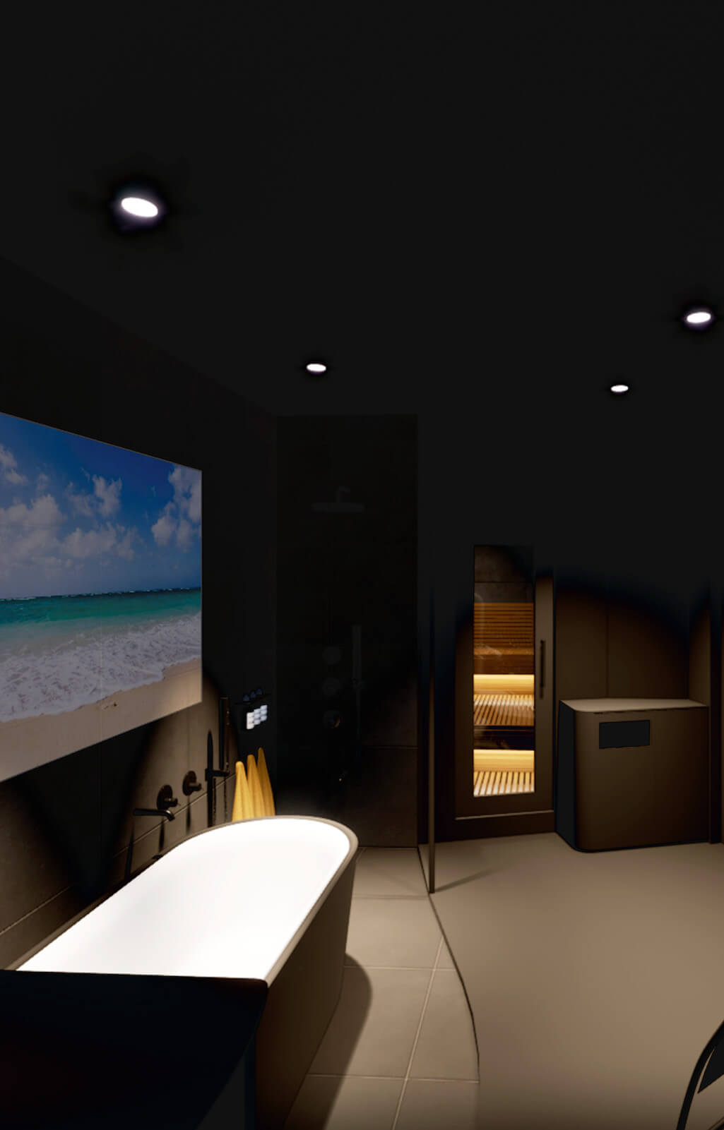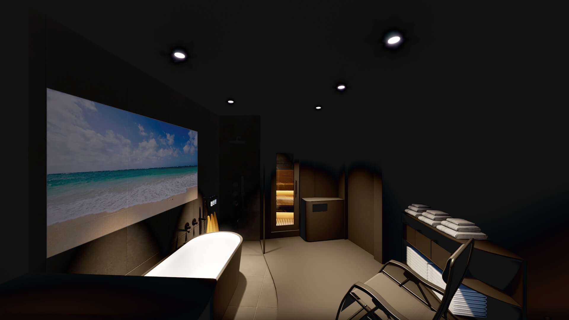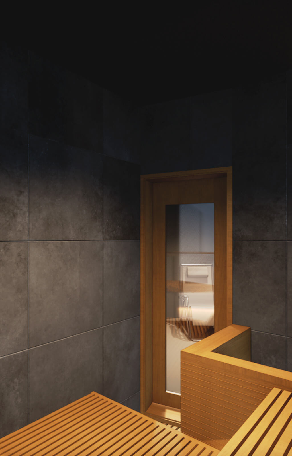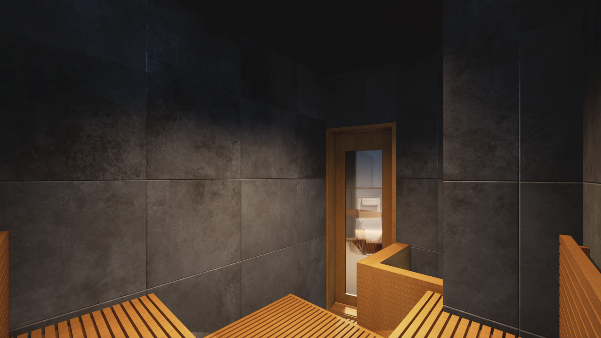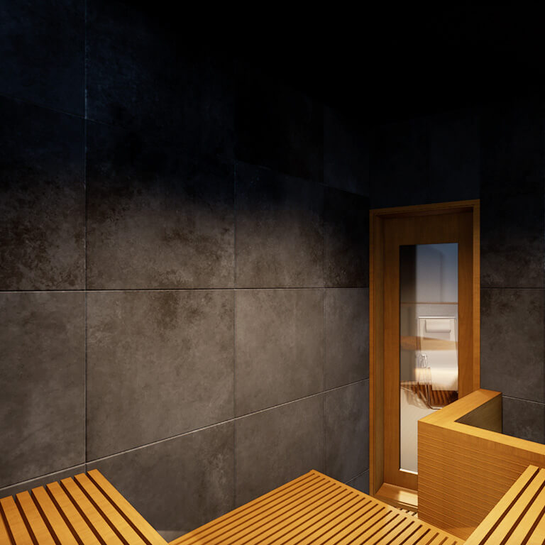 溶岩プレートを施した特別なサウナ室